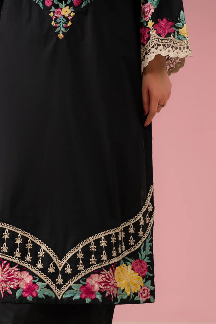 Crafted from premium stone linen, this set features a long-length embroidered shirt with multi-colored detailing paired with a plain trouser for a graceful yet vibrant look.