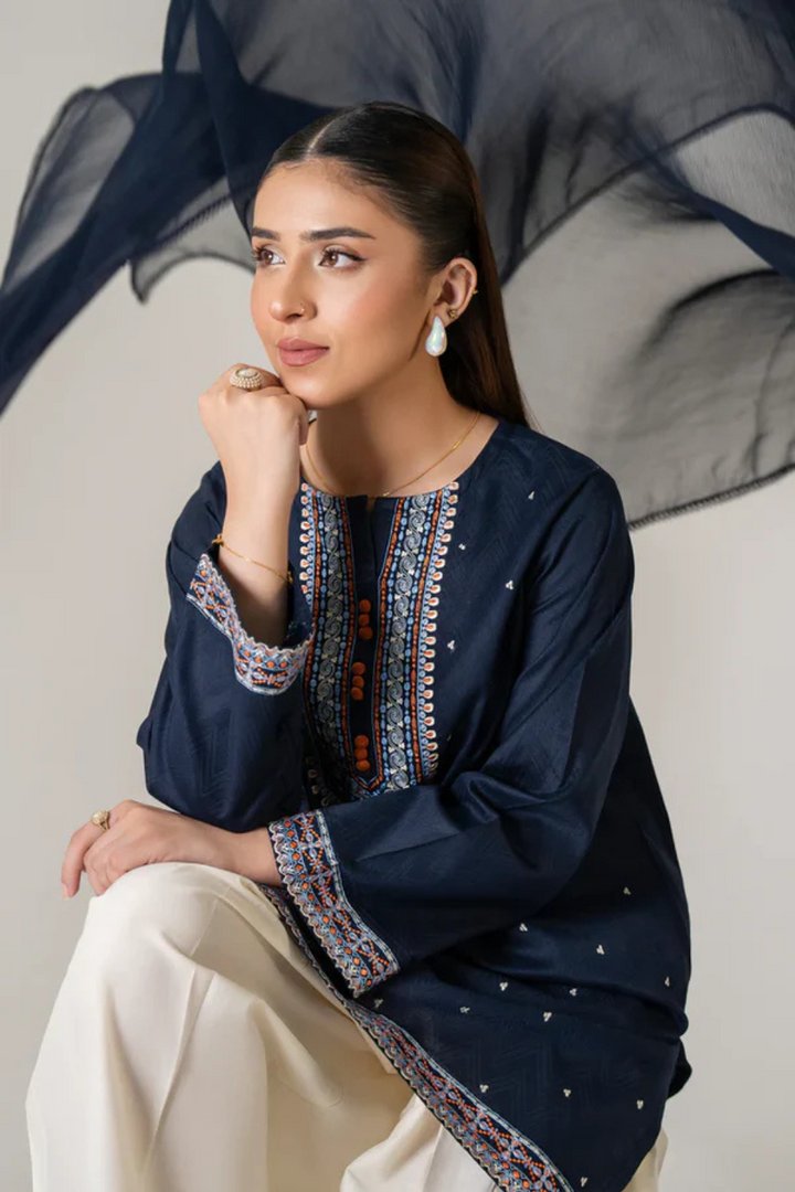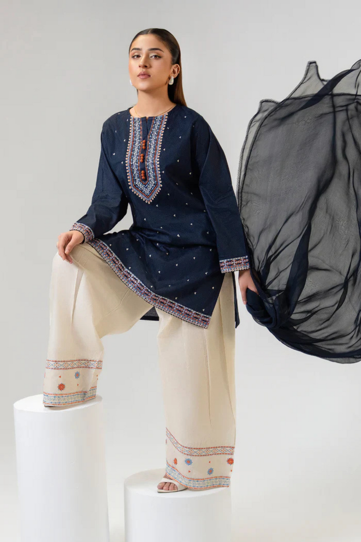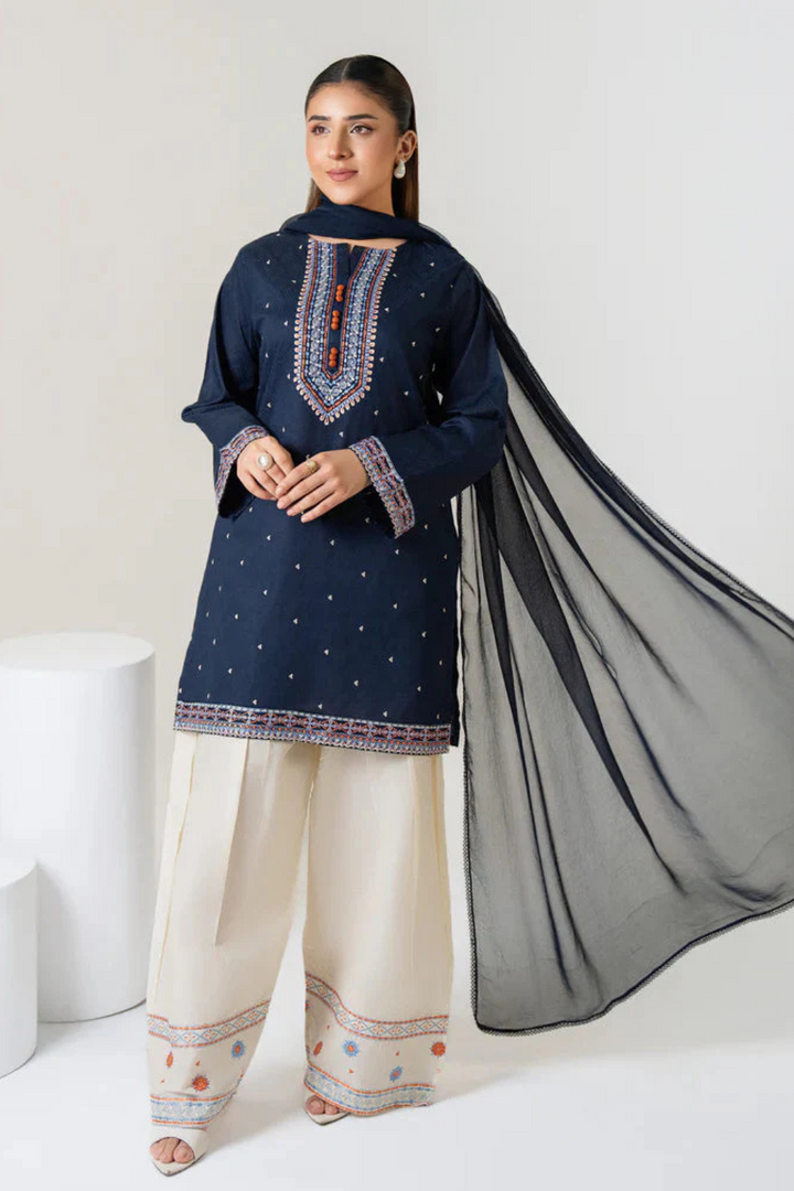 Nazakat is a dreamy 3PC embroidered outfit that blends elegance and comfort — featuring an intricately embroidered shirt and trouser paired with a graceful plain chiffon dupatta.