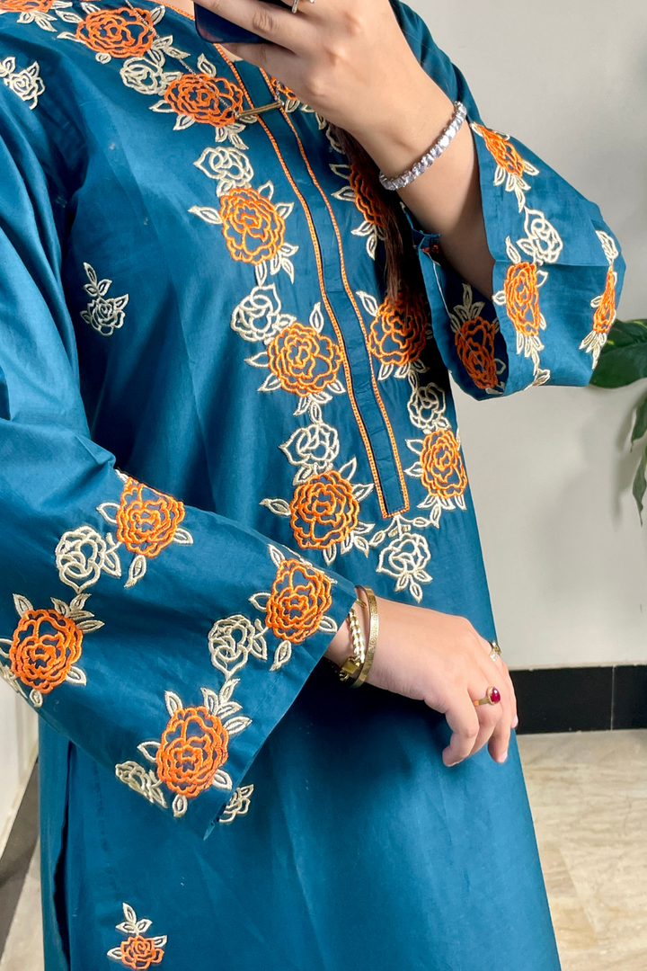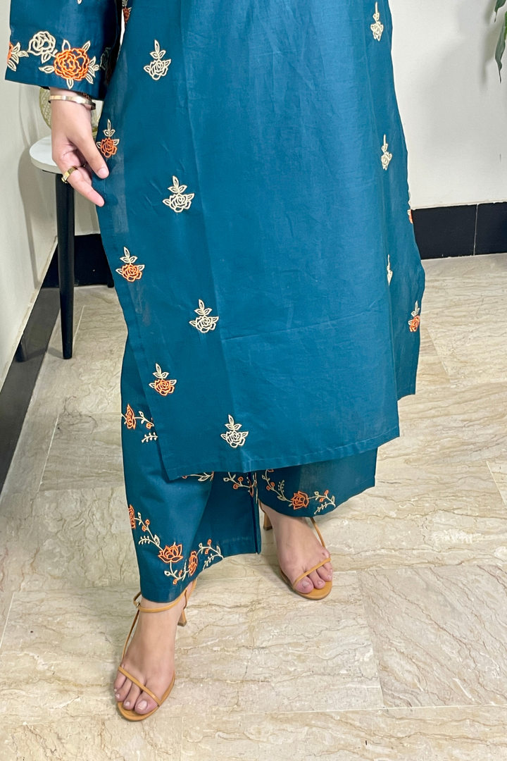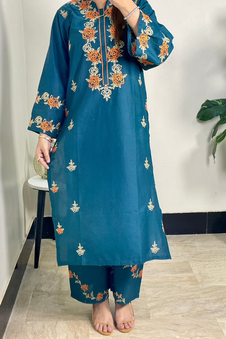 Perfect for festive evenings or semi formal gatherings this deep blue outfit exudes timeless elegance with its rich tone and refined charm